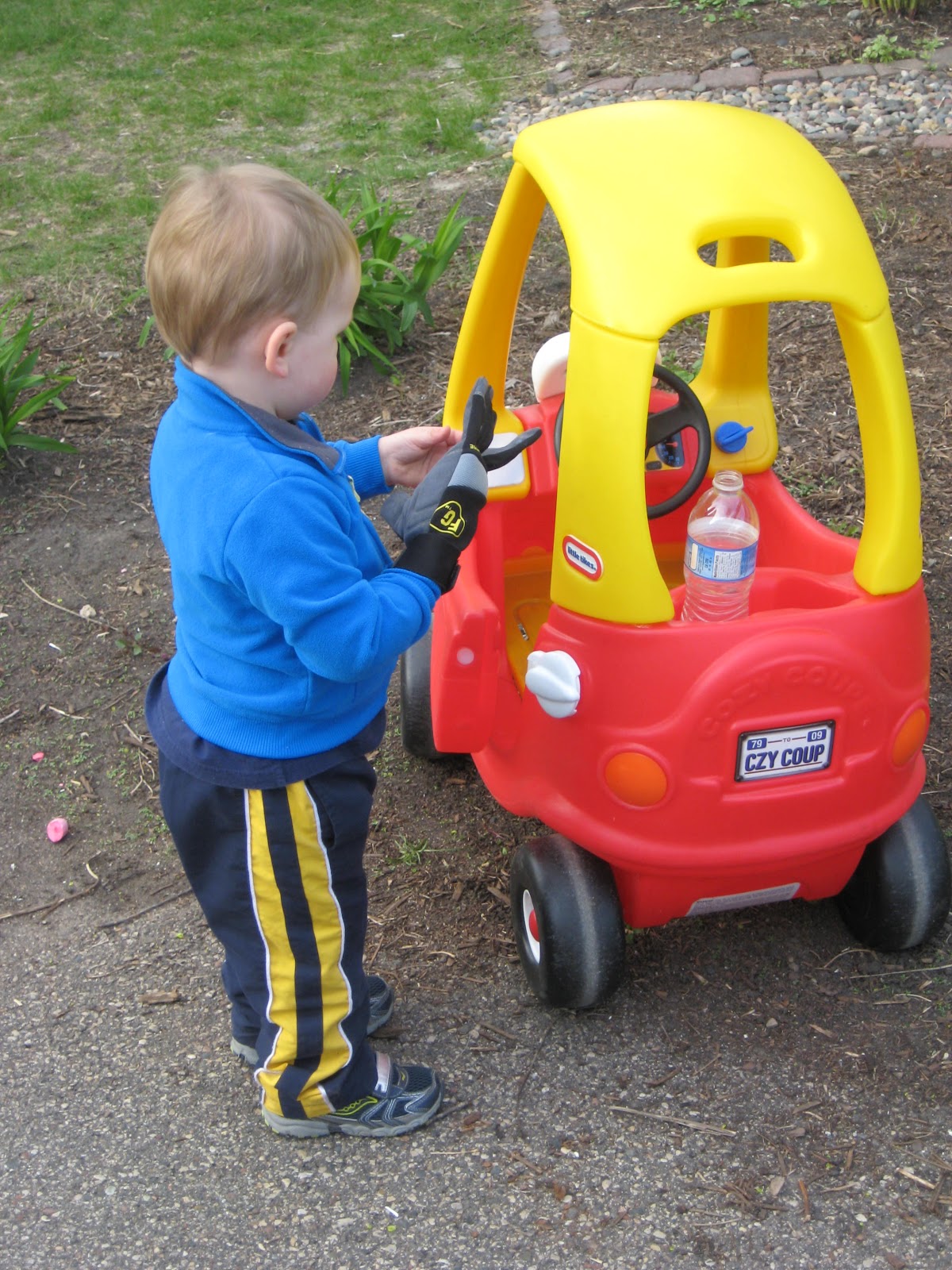 Col enjoyed a few spins around the yard with Dada this afternoon and then decided he was ready to drive the tractor all on his own. By the way, who needs ten and two when no hands works just great?!